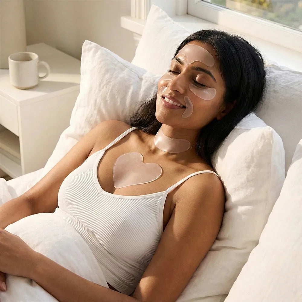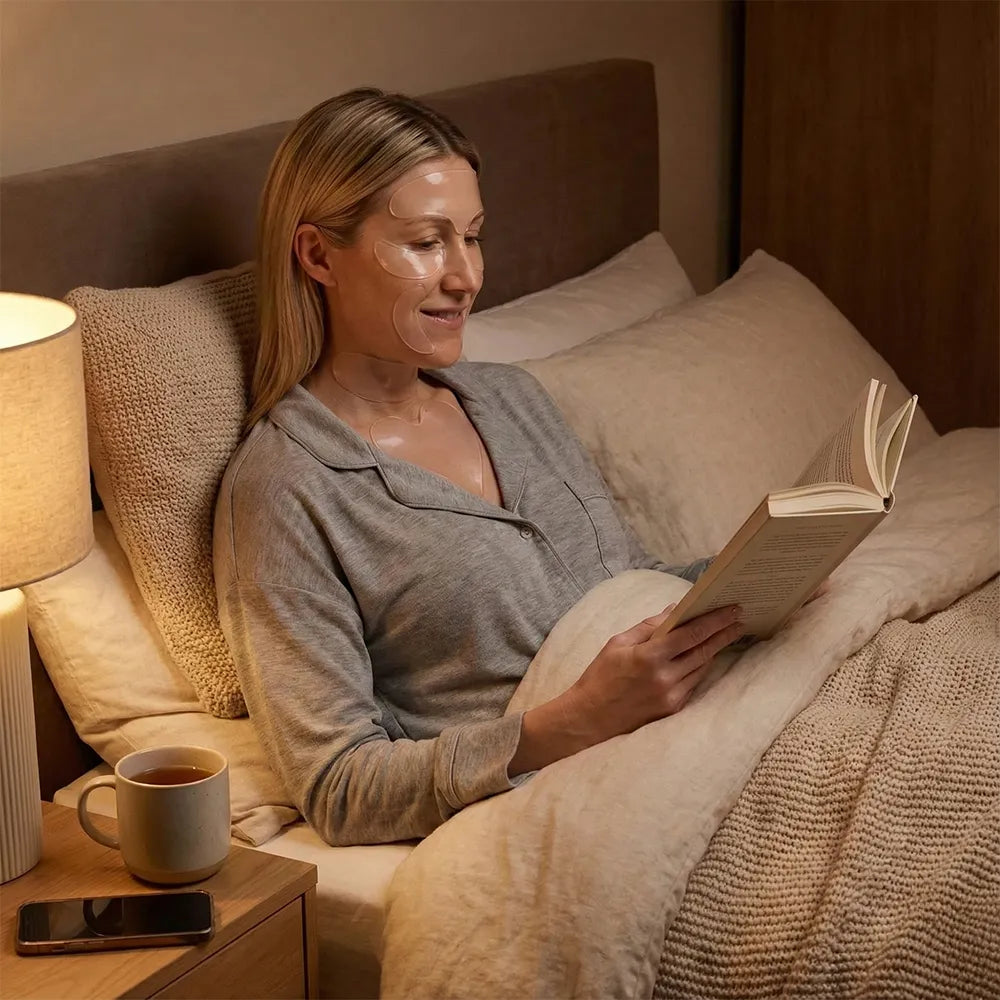 Lightweight, discreet patches you can wear while working, reading, or doing chores. They stay in place without slipping and smooth out lines during your day-to-day routine.